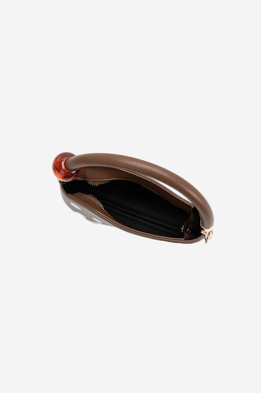 The Jennie Dot Bag by Melie Bianco is a chocolate-hued showstopper in smooth recycled vegan leather, dotted with playful polka dots and topped with a marbled handle bead. Wear it as a crossbody or tuck it under your arm — it fits an iPhone 16 Pro with room to spare. Instant outfit upgrade.