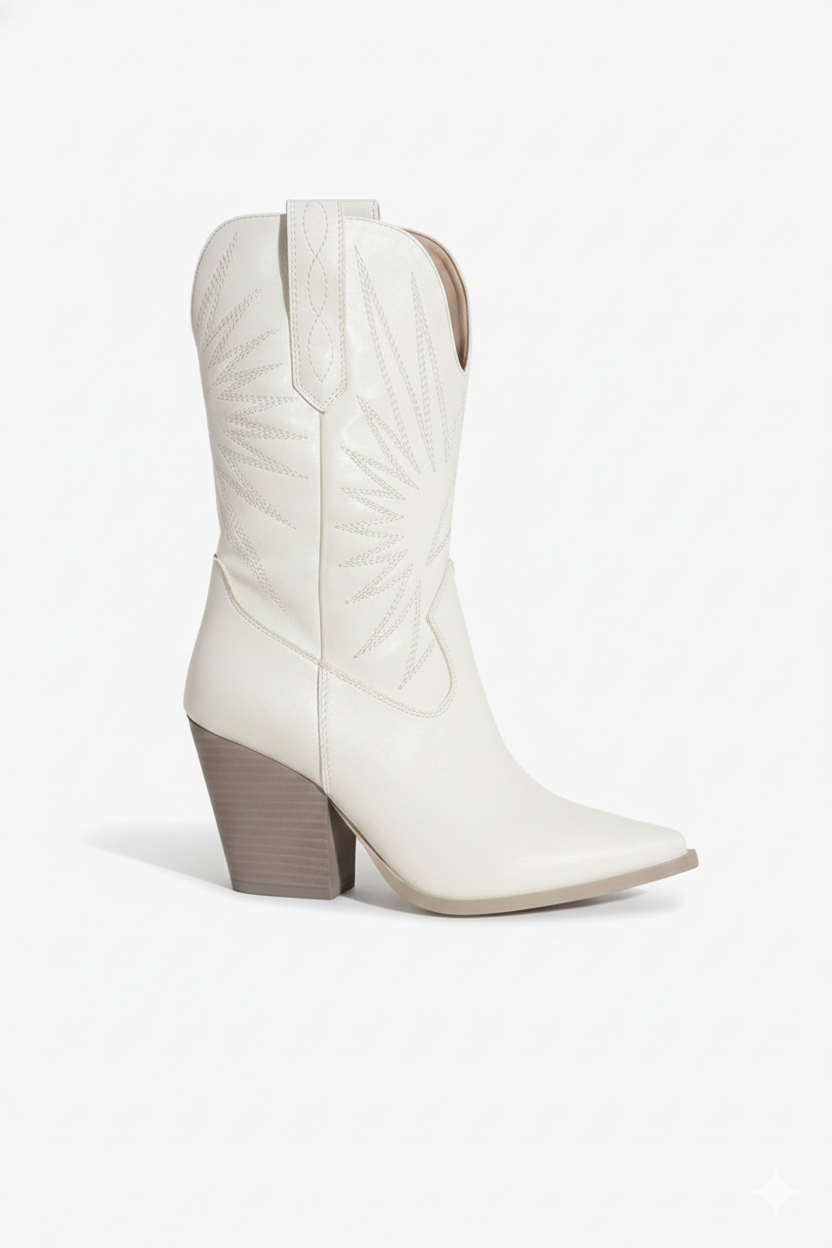 Made with stylish starburst stitching, the Emersyn boot radiates a confident, elegant aura. An absolute necessity for a Nashville night out or a Western-inspired bridal shower, these white cowboy boots will make any modern cowgirl the envy of all.
