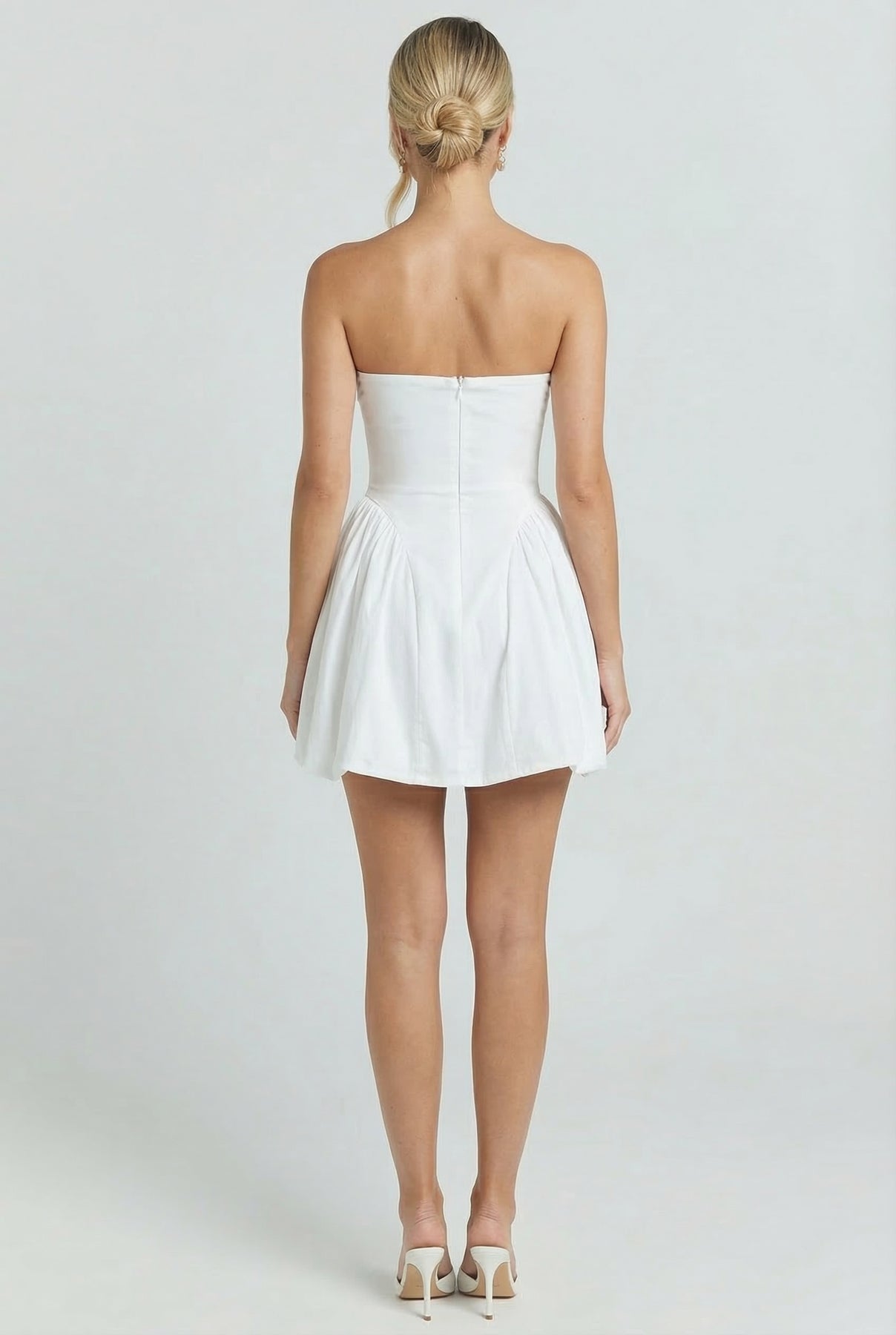 Soft, flattering, and quietly sexy. This strapless mini is all about shape — the ruched bodice smooths everything out while the gathered hip detail creates that effortless curve moment. Easy to dress up or down, but always looks intentional.