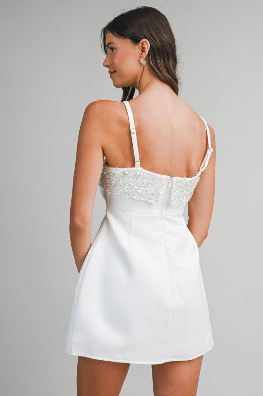 The Private Event Mini Dress brings sparkle without trying too hard — a beaded bustline, a sleek A-line silhouette, and adjustable straps that keep everything effortless. Chic, polished, and perfect for holiday parties, birthdays, graduations, or any night you want to feel a little iconic.
