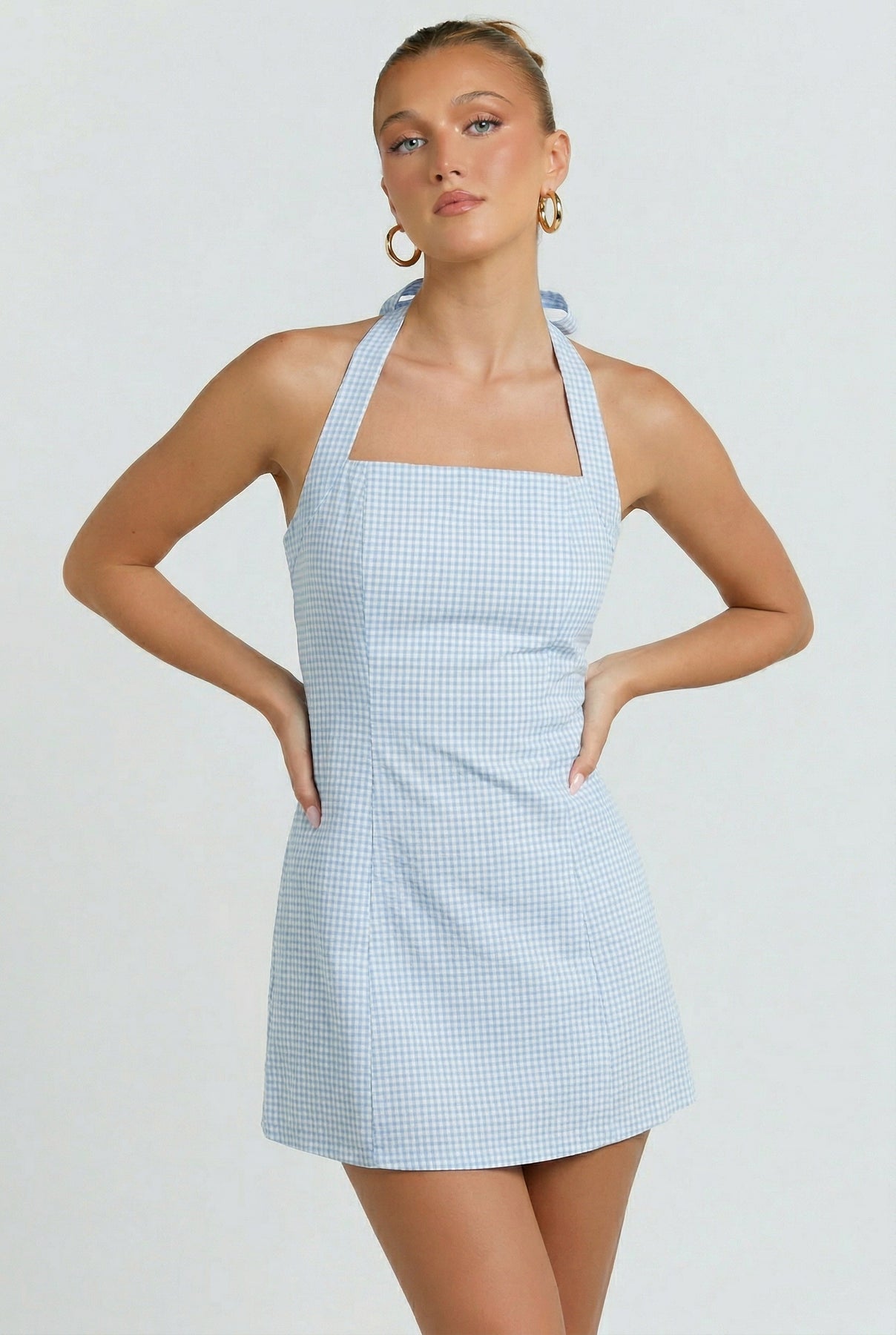 A classic gingham mini. Designed with a flattering halter neckline and structured fit, this one is easy for warm days, weekend plans, and everything in between.