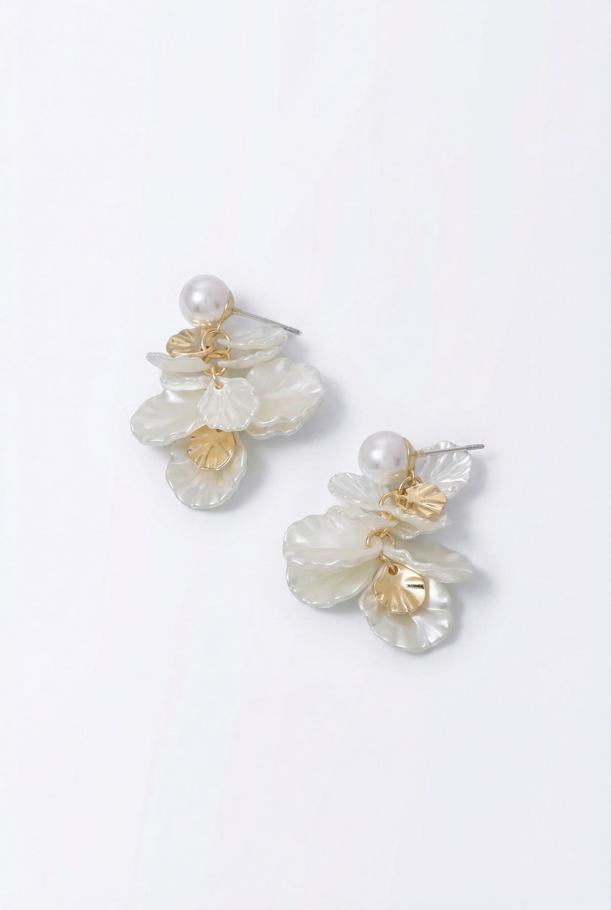 Soft shine with just enough drama. These Pearl & Petals Cluster Dangle Earrings feature layered petal-shaped accents paired with a classic pearl detail, creating a look that feels feminine, dimensional, and effortlessly polished. Lightweight with beautiful movement, they dress up even the simplest outfit and work just as well for daytime plans as they do for special occasions.