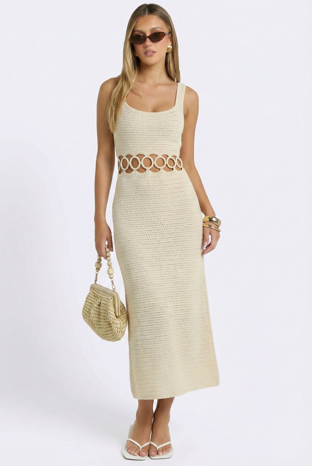 Bali Square Neck Sleeveless Crochet Midi Dress
