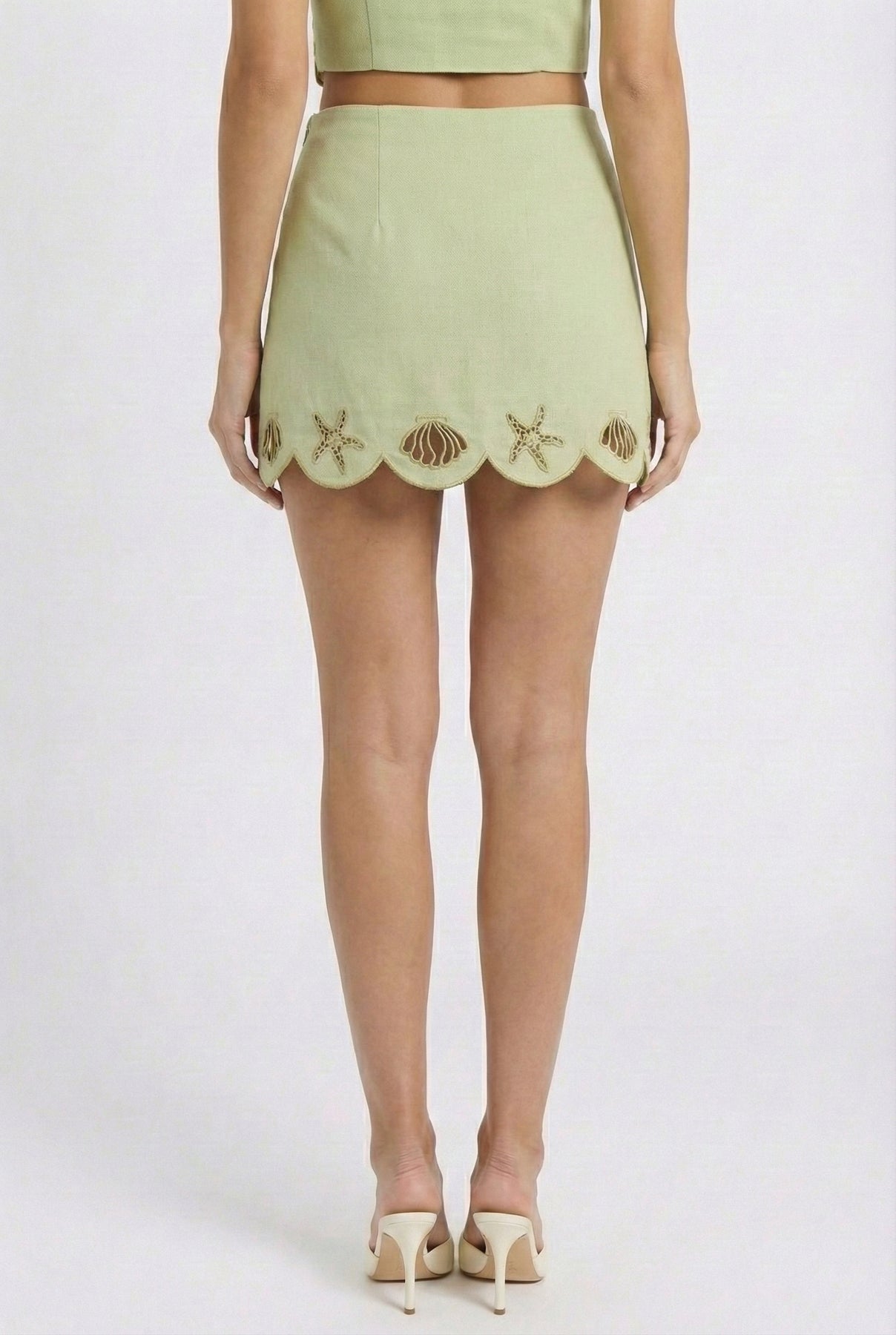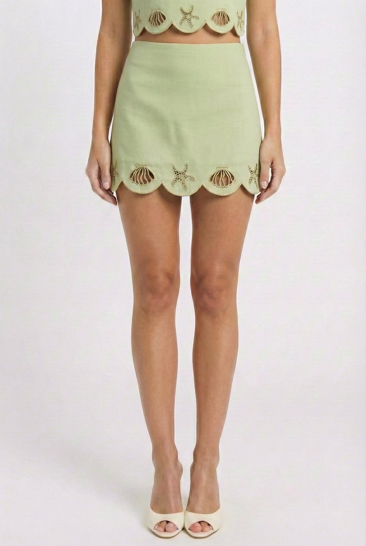 A soft, feminine mini with delicate embroidered detailing that feels effortless and elevated. Designed with a flattering fit and scalloped hem, this one pairs perfectly with the matching top or a simple tank.
