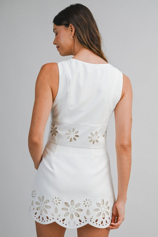 A polished mini skirt with soft, feminine detailing. Designed with a flattering high-rise fit and scalloped hem, this one is easy to style with the matching top or a simple tank.