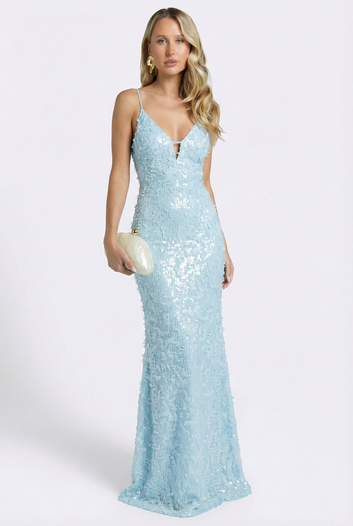 Dazzle all night long in the Envy Me Sequin Maxi Dress. Designed with shimmering light blue sequins that catch every light, this statement gown is equal parts bold and glamorous. The plunging neckline with delicate spaghetti straps adds sultry detail, while the floor-length silhouette brings show-stopping drama. Perfect for holiday parties, formal events, or your next red-carpet moment, this gown guarantees you’ll be the center of attention. Pair with strappy heels and a sleek clutch for the ultimate head-turning look.