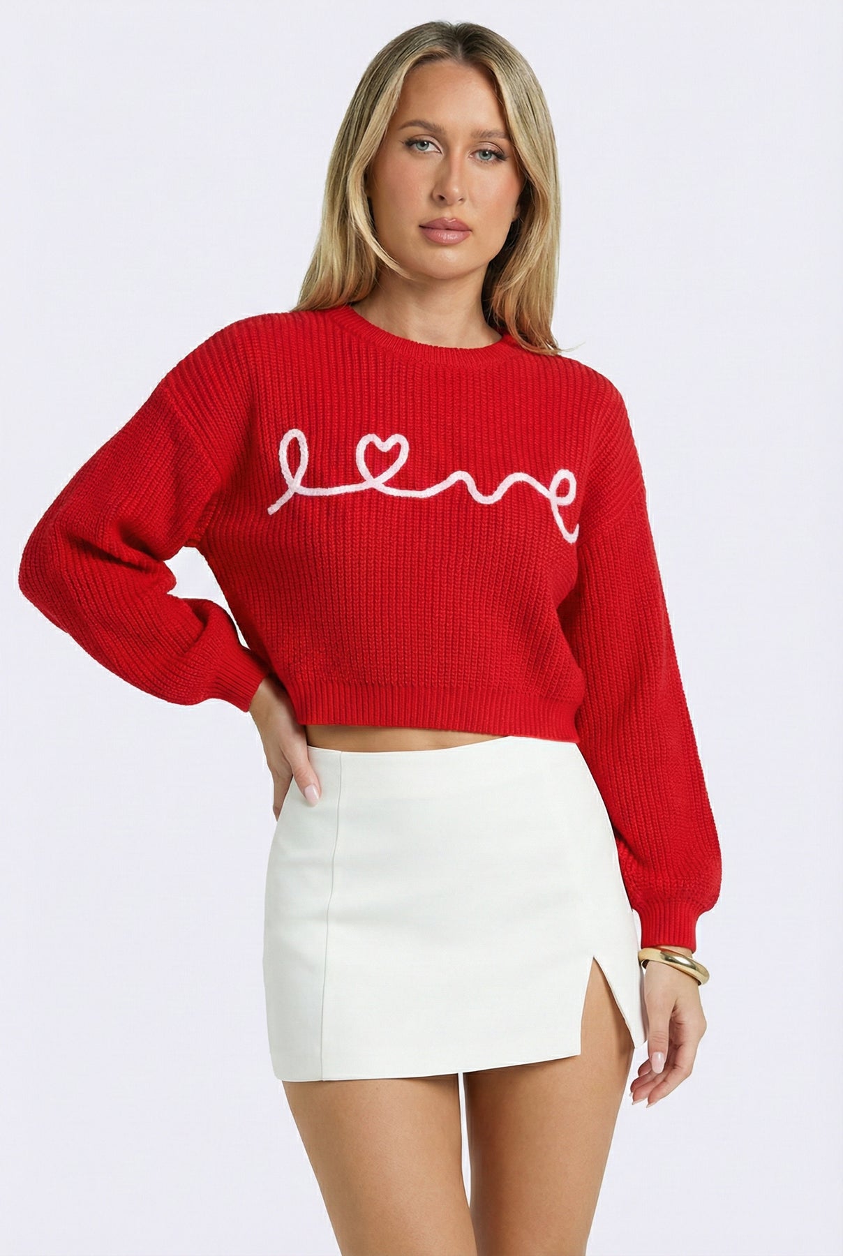 This sweater features relaxed balloon sleeves and a charming embroidered “love” detail that makes it feel special without trying too hard. Easy to dress up or down and perfect for adding a little warmth and personality to everyday looks.