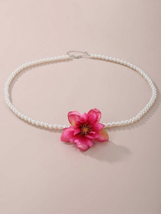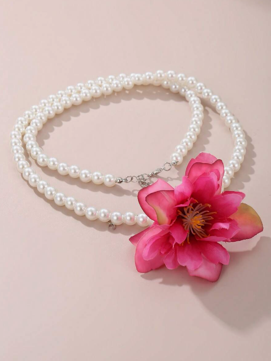 Featuring dainty faux pearls and a soft pink orchid detail, this waist chain adds a flirty, feminine pop to swimwear, resort sets, or crochet cover-ups.
