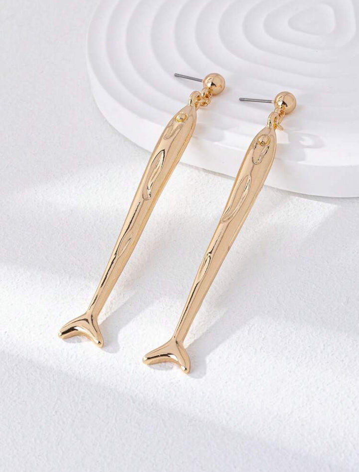 Designed in a sleek golden finish with a sculptural fish silhouette, these lightweight drops add a bold, unexpected twist to your look. Whether you're headed to happy hour or the harbor, these stunners bring major main character energy.