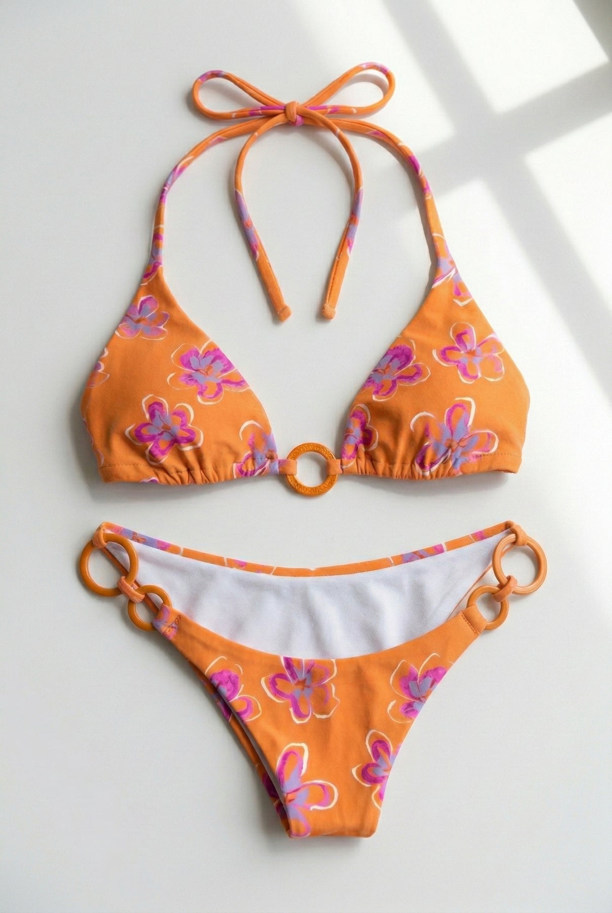 Get ready to make a splash in our Malibu Drives Floral Bikini! Featuring a vibrant neon orange base adorned with a stunning pink and lavender floral print, this swimsuit is a must-have for summer. Dive into style with this trendy piece that's perfect for lounging poolside or soaking up the sun at the beach.