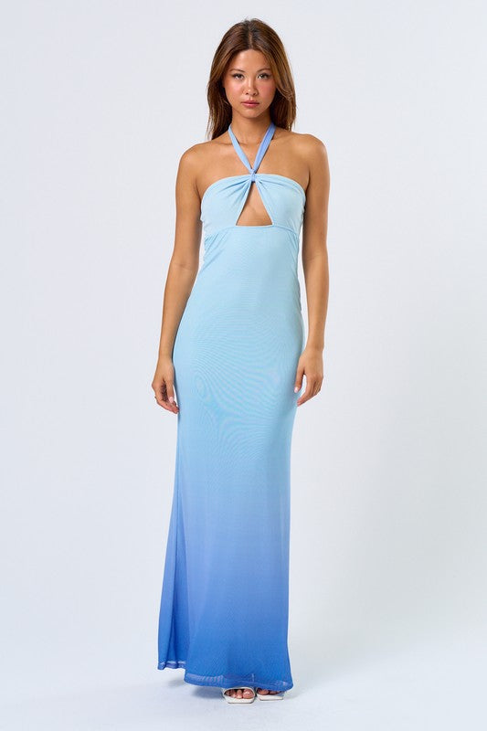 This dress is pure ocean energy. The Malibu Ocean Halter Maxi Dress captures the laid-back beauty of Malibu sunsets with a blue ombré gradient that melts from sky to sea. The halter neckline and front keyhole cutout create a flattering, vacation-ready shape that moves effortlessly from daytime strolls to evening cocktails by the beach. Pair it with gold jewelry and strappy sandals for your next getaway moment.