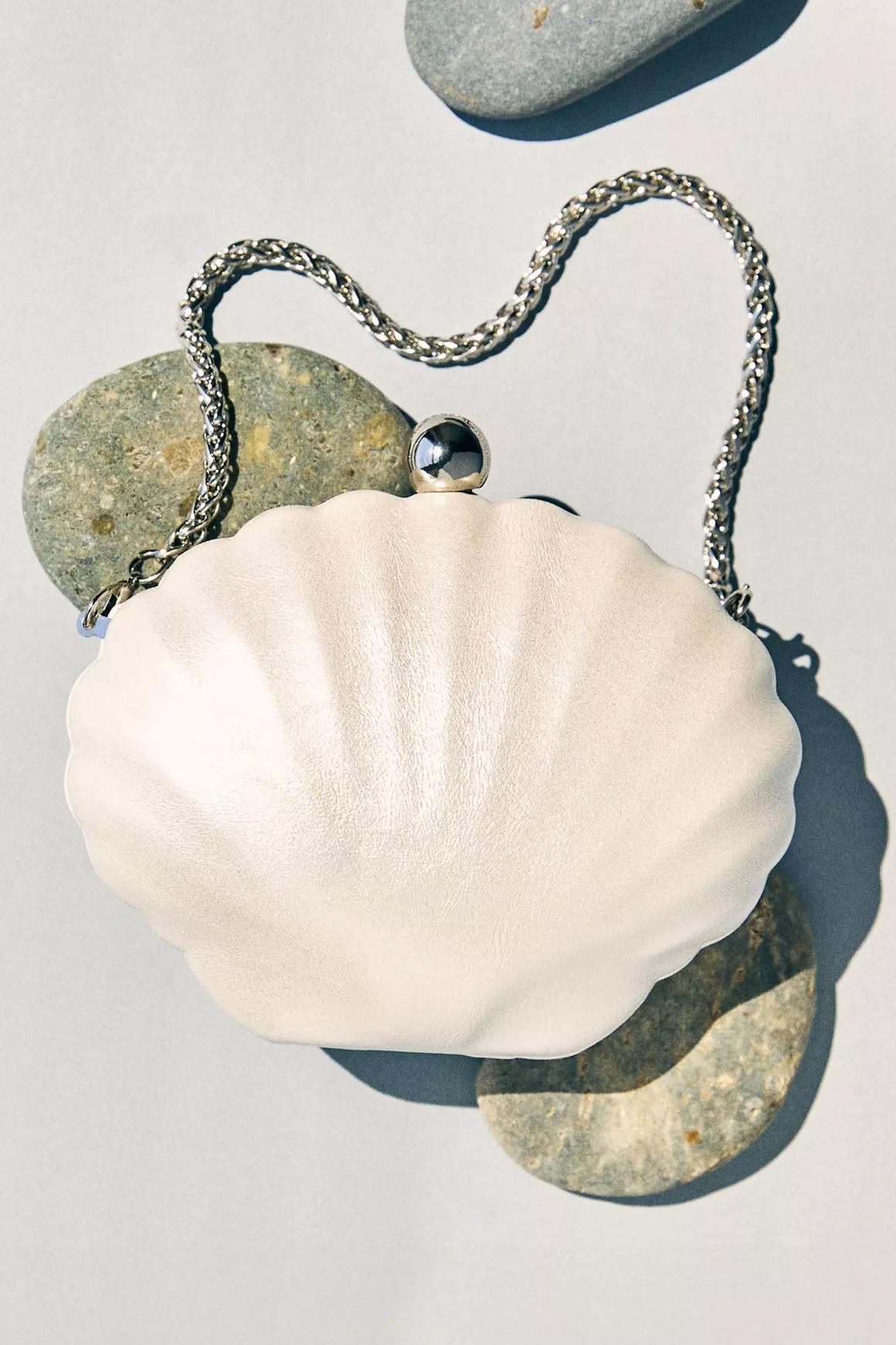 Meet Venus: a stunning, small shell-shaped clutch with a sleek pearl finish. Perfect for your keys and lip balm, it features two straps—a chic short handle and a versatile long crossbody strap. Add a touch of elegance to any outfit with this eye-catching, compact design.