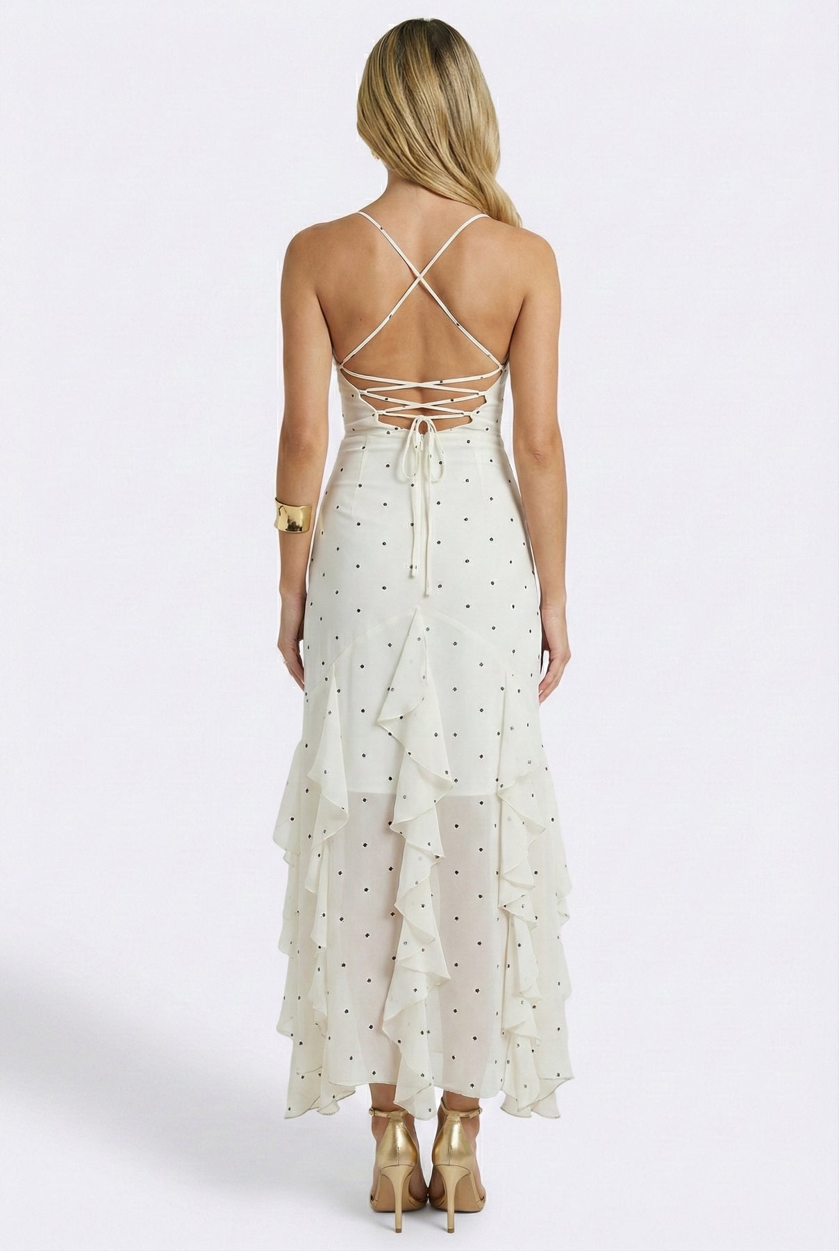Say hello to the ultimate showstopper—our Noir et Blanc Romance Maxi. Designed with cascading ruffles, a flirty wrap silhouette, and a delicate crisscross back, this maxi brings elegance with a playful twist. The dreamy polka dot print gives major French-girl energy, while the adjustable tie-back ensures the perfect fit. Whether you're heading to a summer soirée, beach wedding, or romantic date night, this dress is your new obsession.