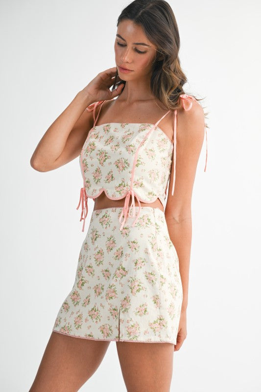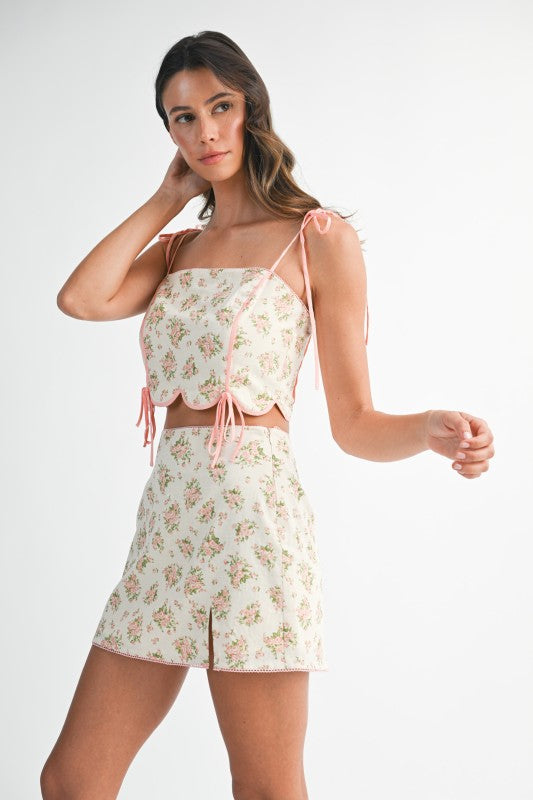 Brunch date? Garden party? A flirty European escape? Say yes to all of it in the Summer in Provence Crop Top. This floral tie-strap top features the prettiest scalloped hemline and contrast piping for that effortlessly feminine feel. Adjustable shoulder and side ties give you the perfect fit every time, and the lightweight woven fabric makes it breezy enough for sunshine-filled days.