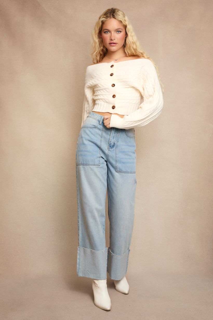 Cute meets cozy in The Sutton Cardigan—a cropped cable knit that’s effortlessly flirty and totally essential. Designed with a wide off-shoulder neckline to show a little skin (or layer over a bralette), this cardigan makes sweater weather feel instantly elevated.