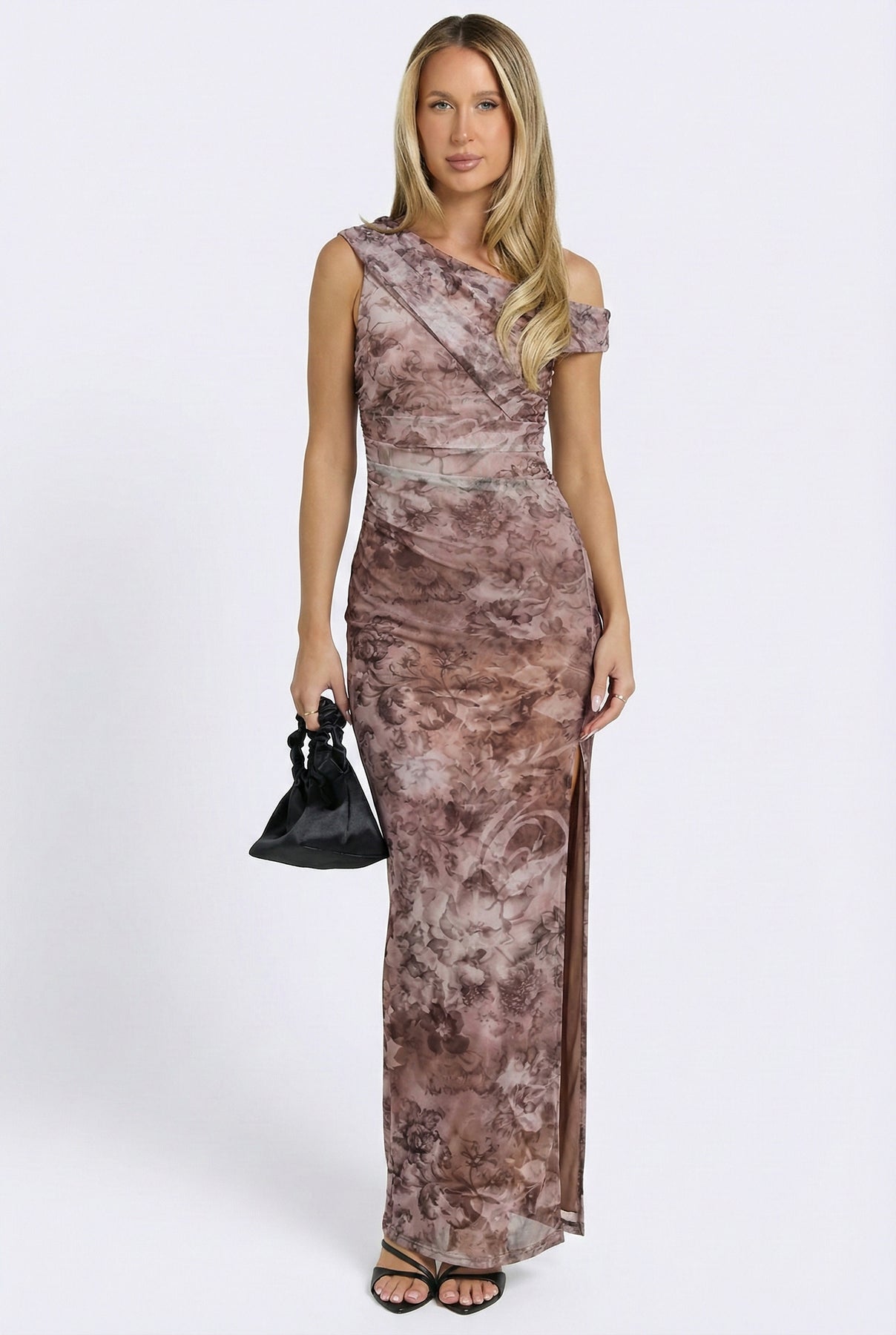 Sophisticated and striking, the Veloura Off The Shoulder Maxi Dress is made for elegant nights and special occasions. Featuring an asymmetrical neckline and body-skimming fit, this taupe maxi brings a refined edge to your wardrobe. The soft, flowing fabric drapes beautifully while the side slit adds just the right amount of drama. Pair it with strappy heels and a sleek clutch for a head-turning look.